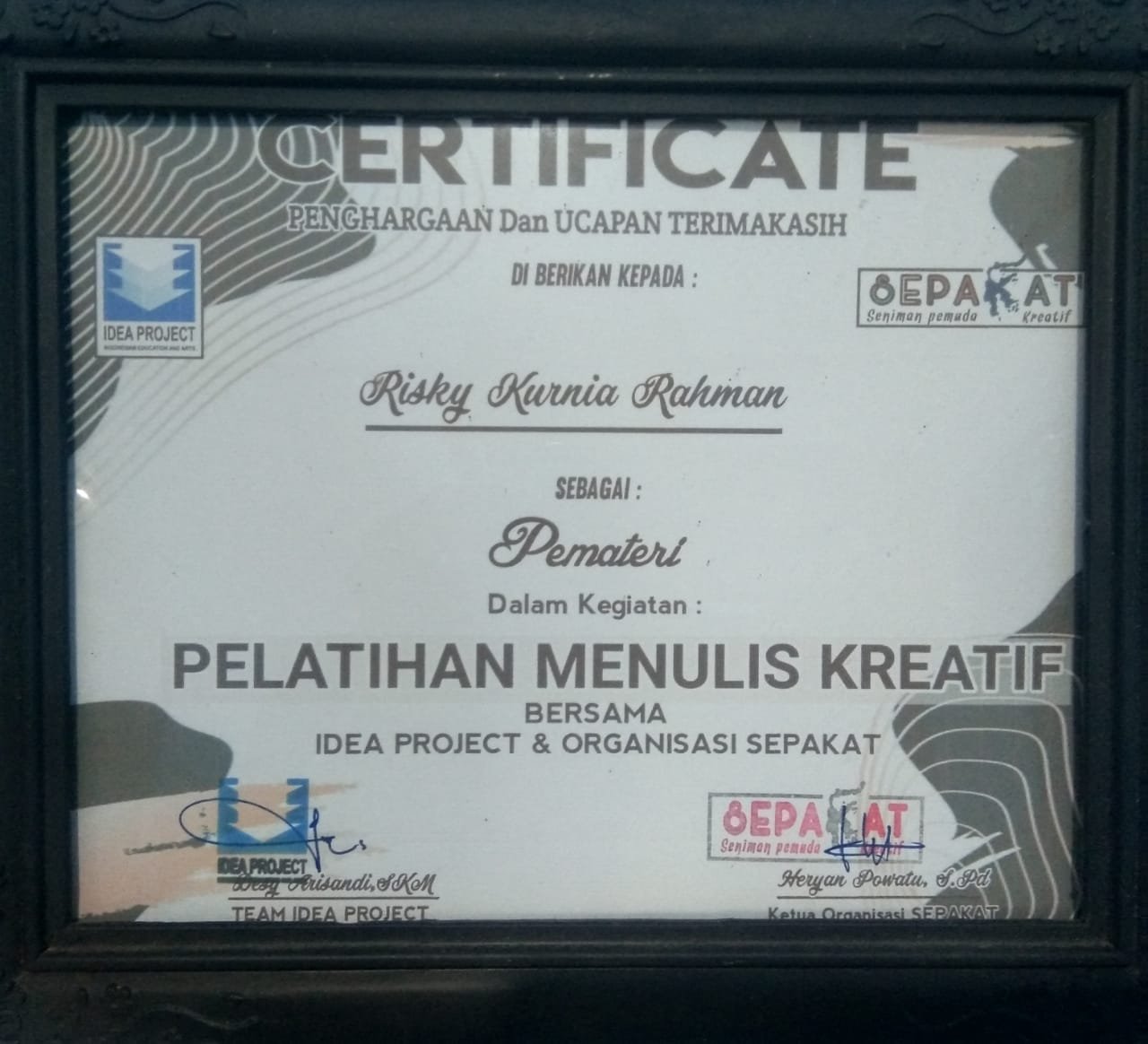Menang lomba menulis pertama saat saya masih kuliah di Universitas Gadjah Mada. Lomba yang ini diadakan oleh Koperasi “Kopma” UGM. Sertifikatnya di bawah ini: