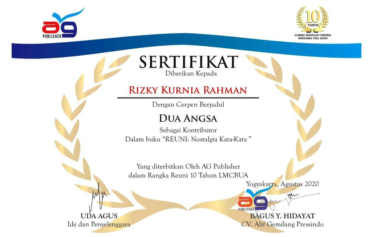Lomba cerpen yang diadakan oleh Uda Agus juga pernah saya ikuti beberapa kali. Dan, selalu hasilnya menjadi buku antologi: